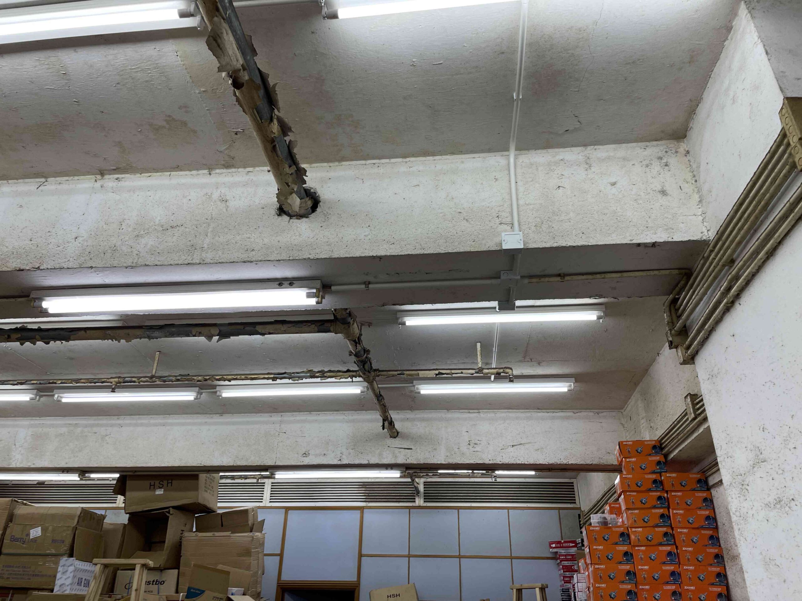 客戶有4個倉庫,由於日久失修,好多電線已經老化,光管支架也因時間的而損壞,現時岀現問題的是第一間,除了室內的電氣裝置老化外,原本的光線也嚴重不足,而也因為仲係用緊舊式有火牛及士達的支架光管,容易變暗,容易壞,維修麻煩,所以我見意佢用Led T8 光管代替舊有光管,支架內沒有火牛,也不用士達,有問題唔著,正常只需更換光管就可以啦。